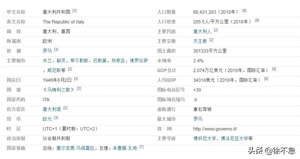 意大利是发达工业国,欧洲第四大、世界第八大经济体。中小企业发达,被誉为“中小企业王国”,中小企业数量占企业总数的98%以上。地区经济发展不平衡,北方工商业发达,南方以农业为主,经济较为落后。2018年主要经济指标如下: