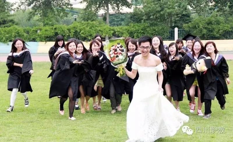 通常的毕业照都是大家穿着学士服扔帽子,像这样