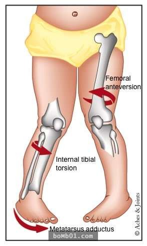 ▼当小孩以鸭子坐的姿势坐在地上时,膝盖是向外翻,这种姿势会导致孩子的髋外展肌、股后肌群、内转肌和跟腱承受更大的压力,还会影响孩子背部及盆骨的发育,导致孩子形成内八脚。