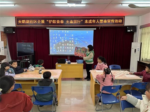 活动伊始,社区工作人员通过播放一段生动有趣的禁毒动画短片,迅速抓住了孩子们的注意力。短片以通俗易懂的方式展现了毒品的危害,让孩子们初步了解到毒品对个人、家庭和社会的严重破坏。