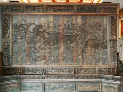 推开一楼大门,迎面就是一幅巨大的精美木雕。大堂的北墙上,挂着余秋雨创作并题写的短文《题状元楼》。大堂的正面(东)墙上,挂着冯骥才手书的“状元在此”四个大字。下方有一张金榜,上有自科举制实行以来历朝历代(自隋朝至太平天国)的654名文状元的名字。余秋雨和冯骥才都是现代有名的宁波籍文人学者。大堂中央放着古时状元的官轿以及考生赶考的食盒、状元篮等。楼上包厢全部采用红木家具,挂有宁波历史上13位状元的画像。