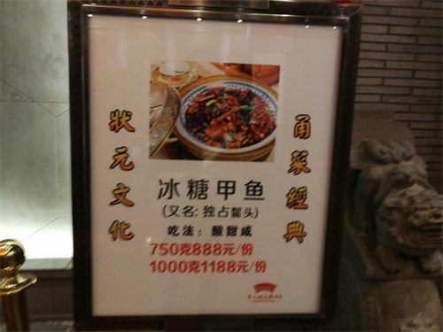 享用宁波十大名菜之首的独占鳌头,最高大上的场所是宁波状元楼酒店。