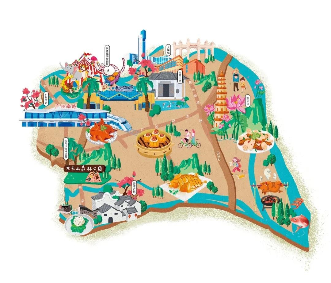 广州美食地图通过手绘画的形式将广州11个区的知味名点、知名小吃与景点呈现出来,形成每个区专属的美食地图,让各方游客和“吃货”邂逅广州美食,用味蕾打开广州11个区的美食地图,深入体味到广州的独特文旅魅力。