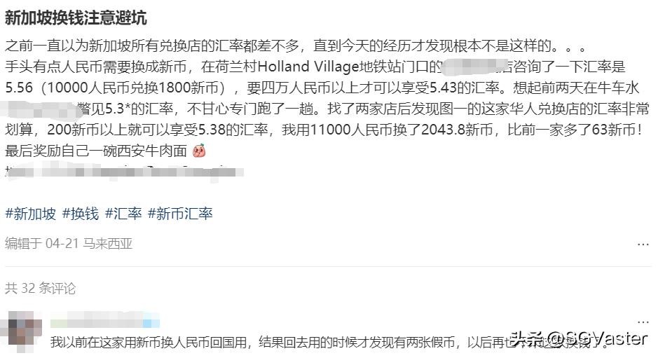 另外,在一篇帖子下,万事通看到了一条评论:“有人新加坡的一家换钱店里换到了假币!”