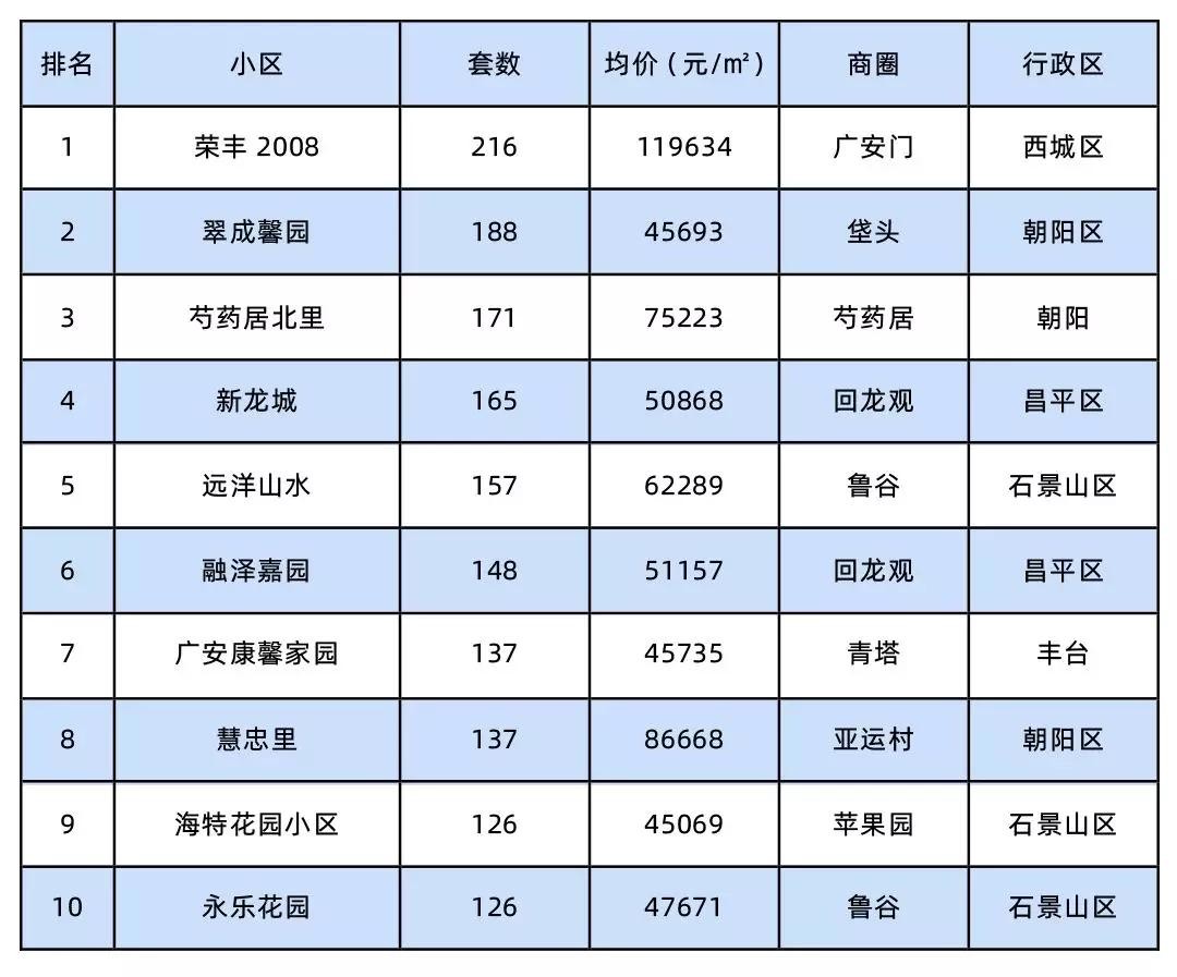 基于北京市二手房的成交数据,2019年度北京二手房成交TOP10小区也出炉了,榜单如下:
