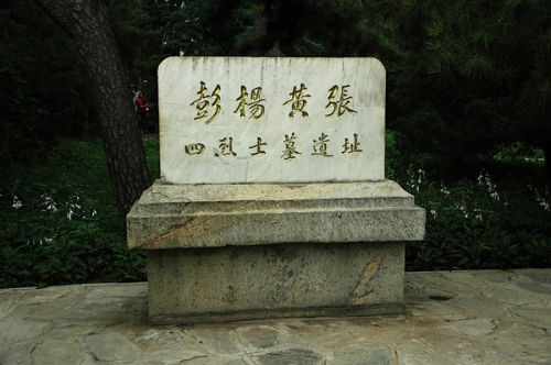 动物园大门的西南侧,是彭家珍、张先培、黄芝盟、杨禹昌四位辛亥烈士的遗骸埋葬地。墓地底座为正八角形,高约1米,上竖有高约8米的纪念碑上书“彭、杨、黄、张四烈士之墓”。四烈士的棺柩分别安葬在正东、正西、正南和正北的石冢下,墓前有墓碑。上世纪六十年代被毁。现北京动物园和北京石刻艺术博物馆各保存一块墓碑。