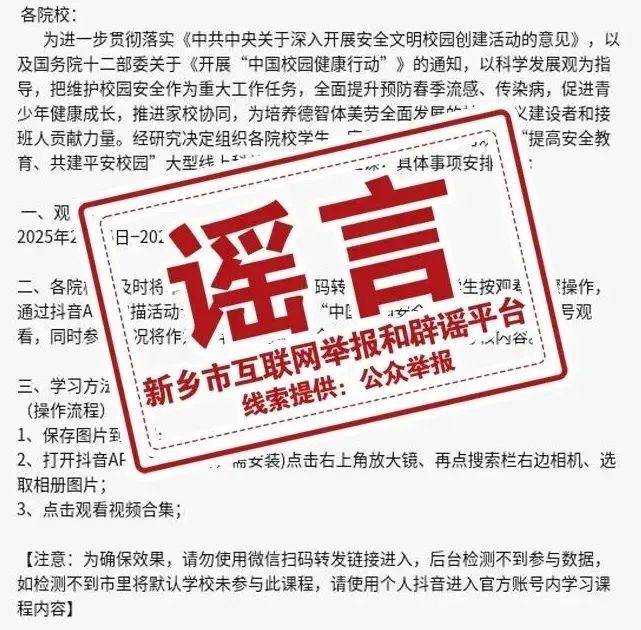 ⭐网传“新乡疾控中心组织观看春季传染病健康教育视频”系谣言