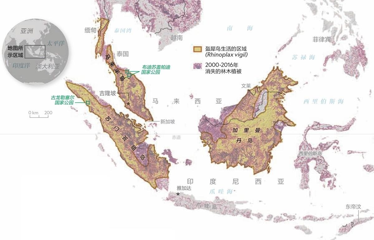 盔犀鸟的栖息地以及数量正在逐渐减少