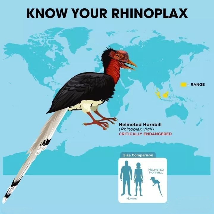 并且需要注意的是,由于雄性盔犀鸟的头骨更大更红,所以偷猎者会将猎枪首先对准这些雄鸟,而这种行为,无疑就使大量在巢中等着丈夫回归的雌鸟陷入了生存危机。