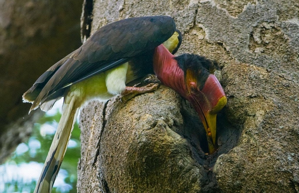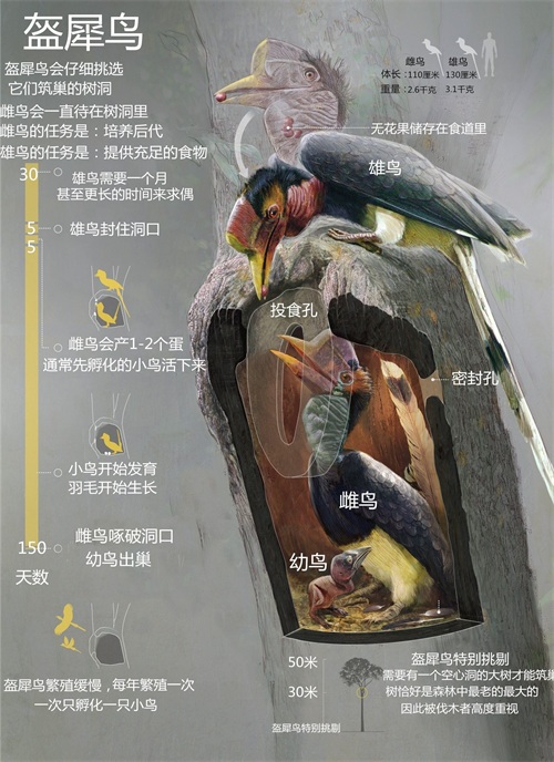 盔犀鸟雄性承担觅食职责,一旦被猎杀,雌鸟和幼鸟都难以存活