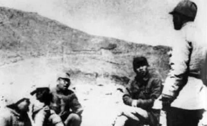 在1942 年5 月反“扫荡”战斗中,左权(右二)在战地听取汇报。
