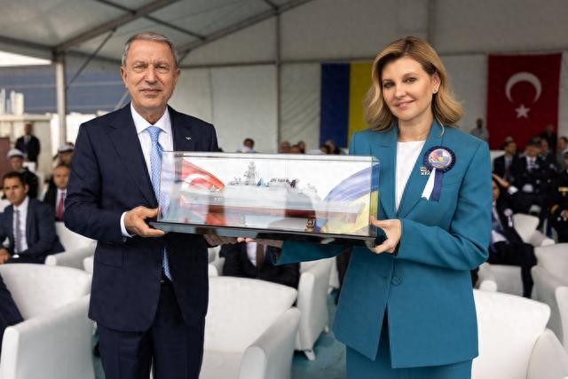 土耳其代表向乌克兰总统夫人埃琳娜赠送Ada“岛”级护卫舰的模型