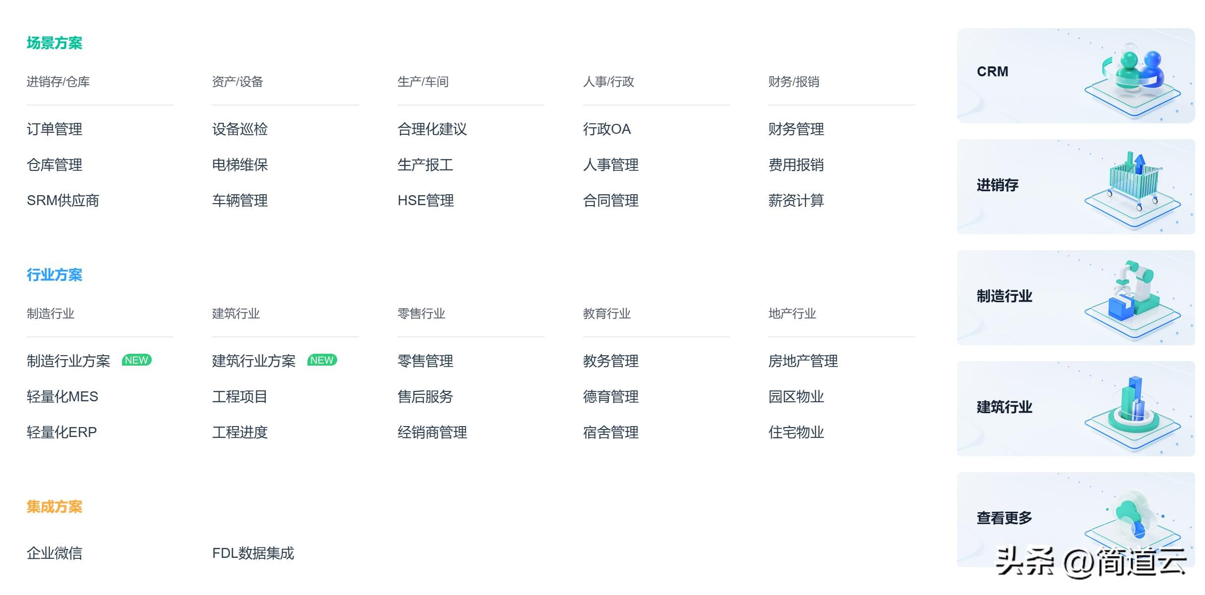 根据其表单、流程引擎、仪表盘三大核心能力,简道云集合了几乎所有业务场景的解决方案,比如人事内服管理、OA审批管理、客户CRM管理、进销存仓库管理、工程项目管理等等......