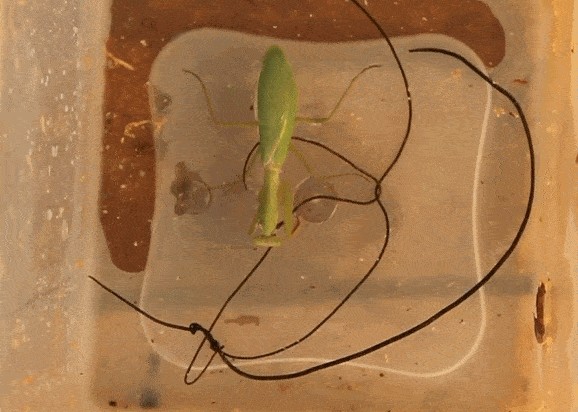 在这里有一个很大的误区,就是很多人认为铁线虫只寄生螳螂体内,其实这是很片面的,直翅目下的比如蚂蚱、蟋蟀、螽斯等昆虫甚至是甲虫都是铁线虫寄生的对象,我们觉得只寄生在螳螂体内是因为接触的视频资料大多数是螳螂的,就像认为狂犬病只感染狗一样,而且螳螂体型大、捕捉各种昆虫,所以体内容易富集和寄生铁线虫。