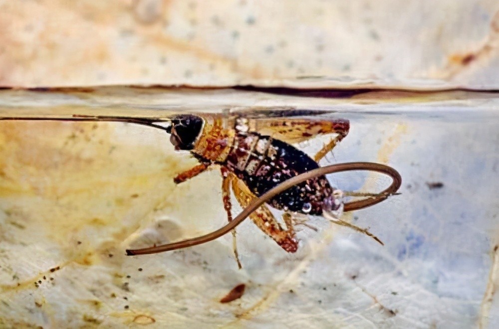 铁线虫是少数可以控制宿主行动的寄生虫,表现为控制宿主接近水源,等宿主投入水中以后,体内的铁线虫会破腹而出,此时的铁线虫才会发育到成虫阶段,进行繁殖。