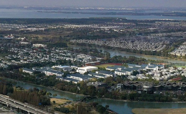 航拍中的朱家角中学(2021年摄)