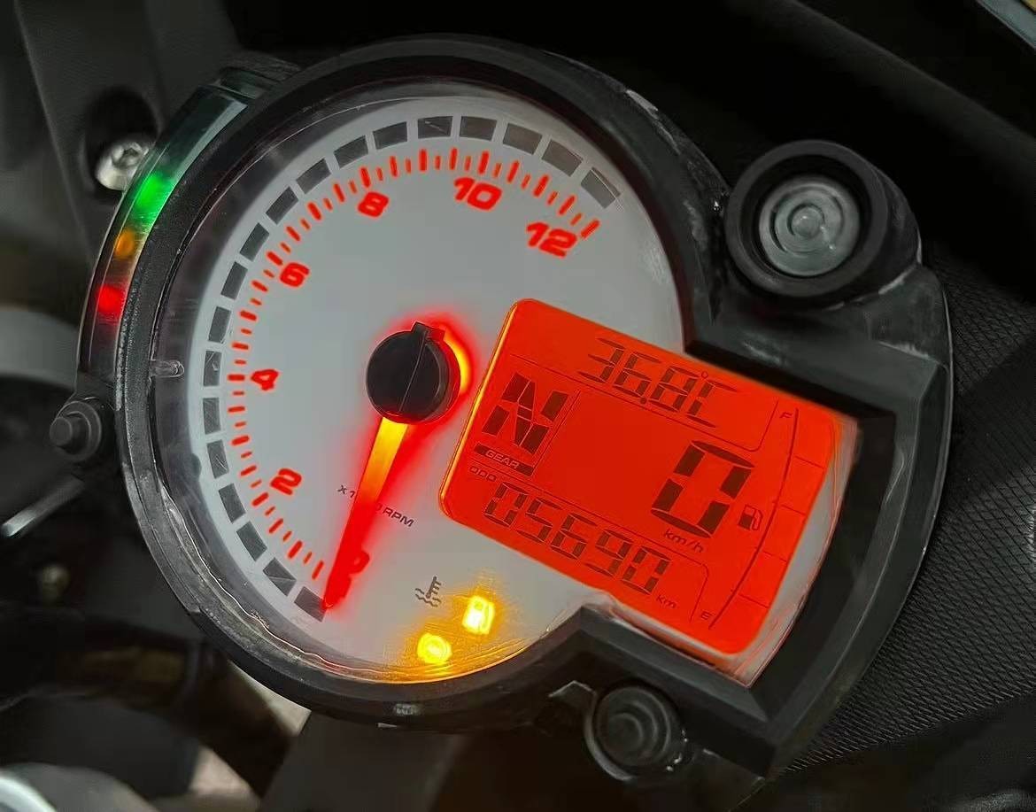 GPR的颜值还是在线的,又帅又好看而且也很耐看,看够了就买个贴花自己随心改也不贵。这个就不多说什么了,毕竟外观这东西因人而异。而且作为一个上市这么久的摩托车很多人也都熟悉。不过我很喜欢GPR的仪表,特别是那个会随着指针变化的拖尾效果。还有他的日行灯也挺特殊的,不过据说很费电。