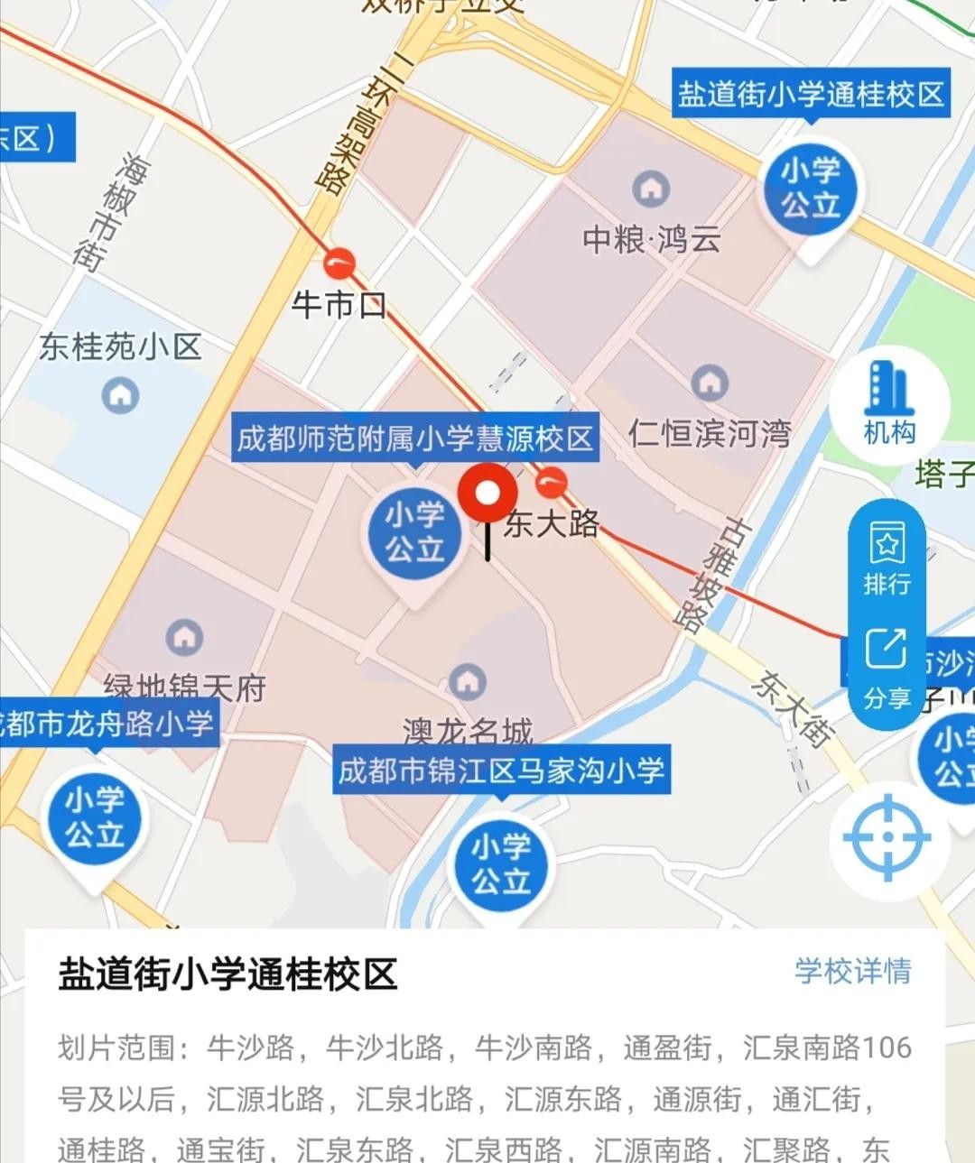 成都师范小学(慧源校区)和盐道街小学(通桂校区)的划片范围示意图