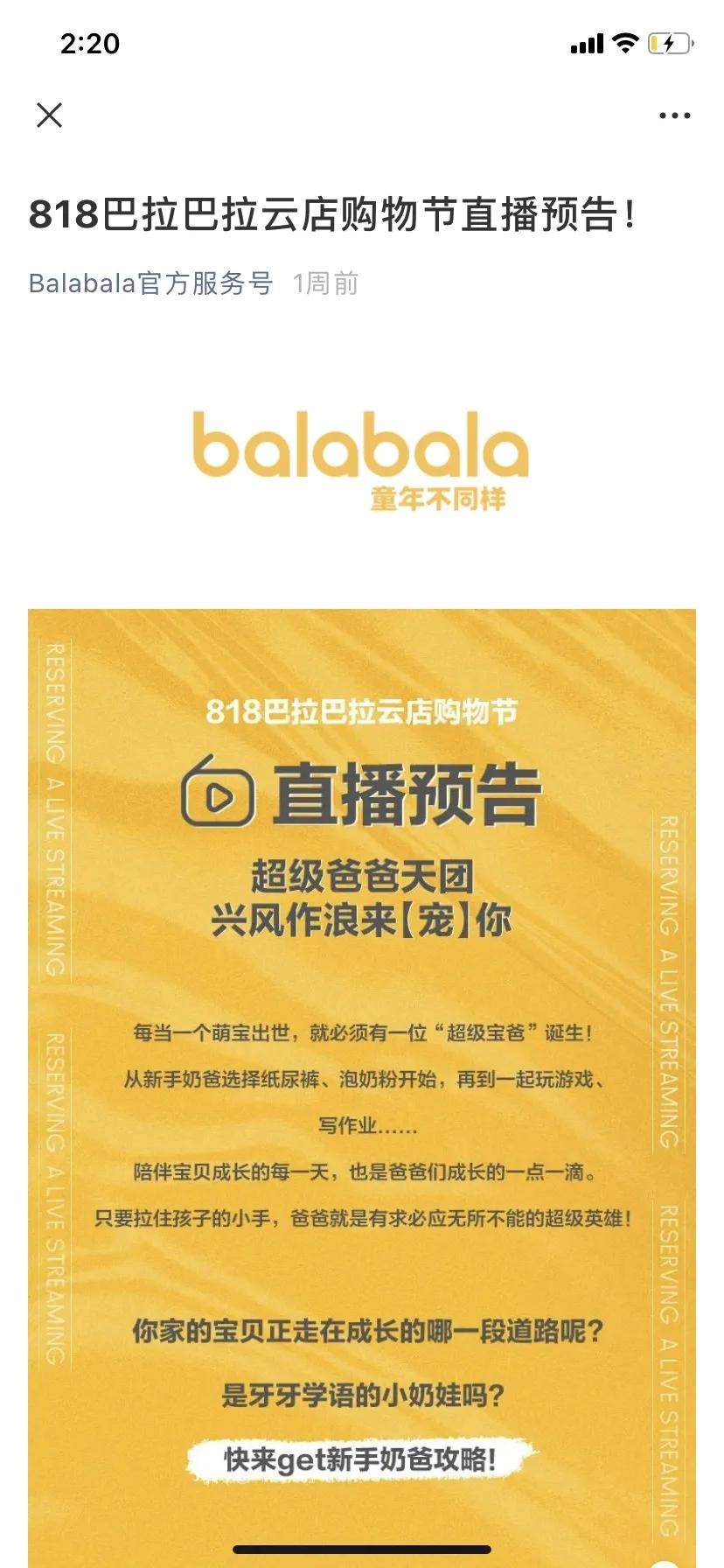 在此次818大型活动中,巴拉巴拉开启首届云购物节,通过1元秒杀券+宝爸直播大抢购等组合营销玩法,小程序云店商城突破1100万!
