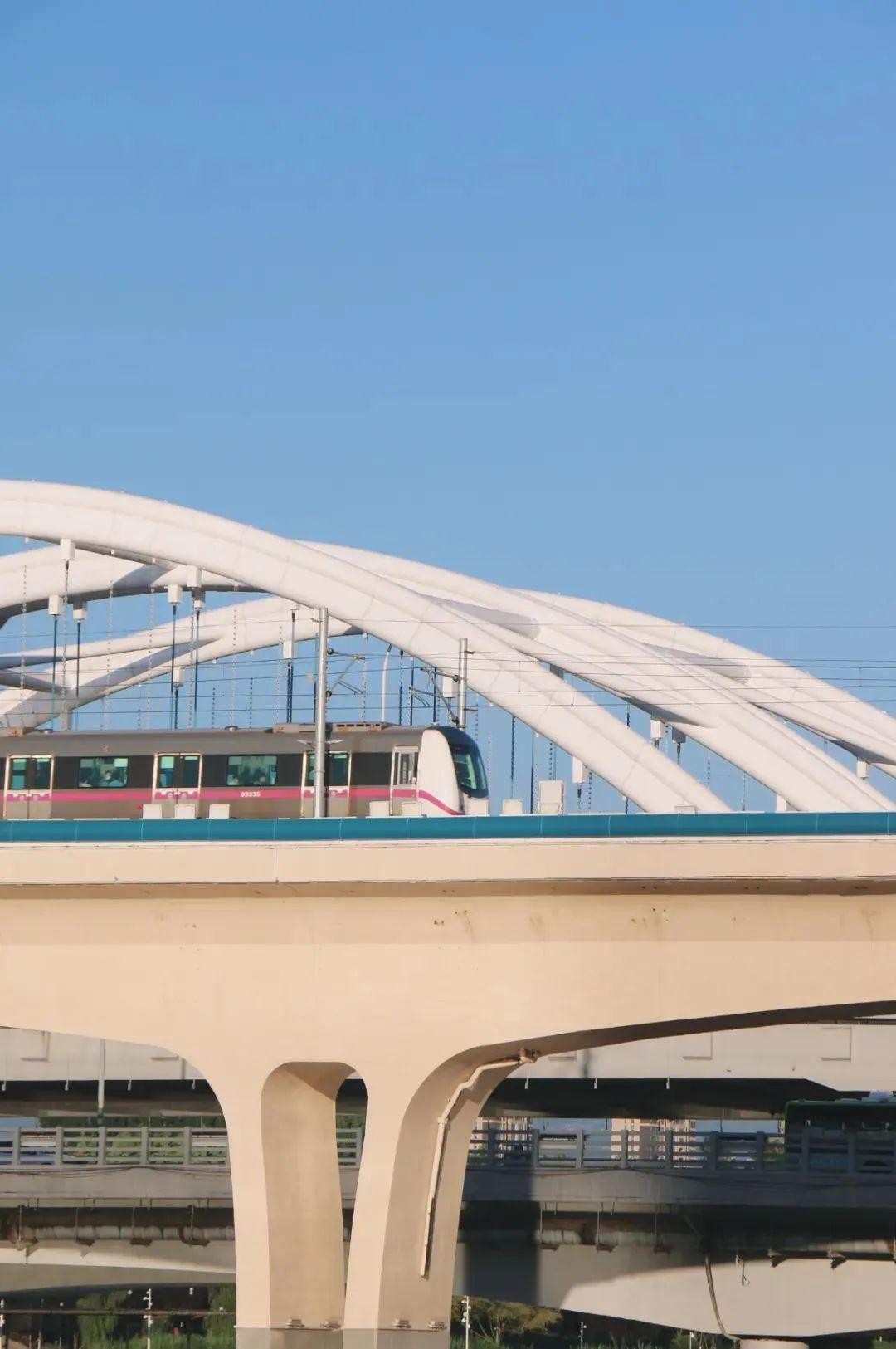 望地铁3号线在桥上驶过