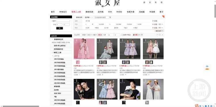 记者查看淑女屋小红书网店看到,按照销量从高到低排列后,销量最高的仅为4件,为一款长袖宽松翻领凡尔赛王子衬衫;此外,上游新闻记者了解到,目前淑女屋服装的主要销售渠道为天猫旗舰店。记者在旗舰店首页以销量从高到低排列显示,销量最高为300+,且大多为衬衫、裙子、裤子等品类,而淑女屋品牌主打的连衣裙系列产品最高销量在100+,旗舰店全部商品价格区间在588元-8999元,最贵的为一款“玫瑰花洛丽塔公主裙”,最便宜的为一款“2022新款女V领卫衣外套”。