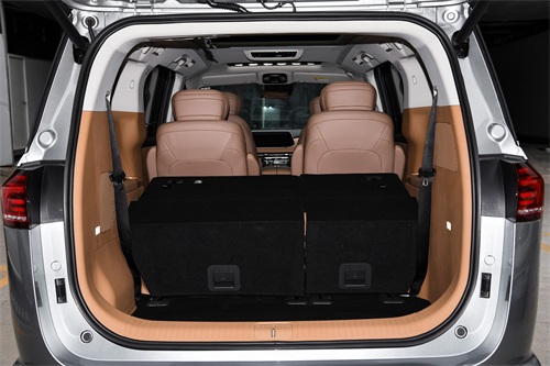 官方公布第二排上车地台高度为400mm,配备两级扶手设计,能方便老人和小孩上下车。同时在左侧B柱配有电动侧滑门按钮。瑞风RF8的后备箱常规空间去到700L,三排座椅放倒后最大可拓展至2500L。但是受限于第三排座椅可移动设定,不能像别的MPV那样两边挂起座椅或者完全收纳到地台,会占用部分后备箱空间。