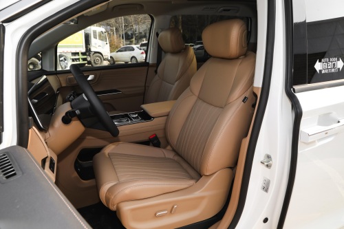 乘坐体验方面,座椅实际坐起来挺舒服,填充物什么都很充足。在配置上,前排座椅支持通风加热功能。而二排座椅官方宣称支持“零重力”,另外像电动八向调节、通风、加热、按摩的功能都具备了。但是有一个奇怪的地方,前排副驾是前两排座位里最“不受待见”的座位,不仅座椅调节是手动,而且通风和加热都没有。