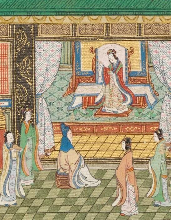 当玄宗托人将口信送达的那一刻,贵妃含情带泪辞谢(图片:日本十七世纪画家狩野山雪《长恨歌图》局部)