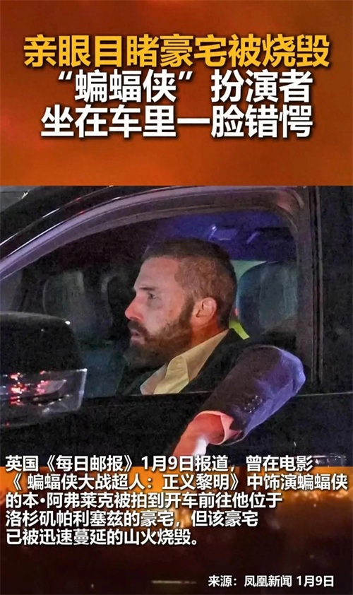 本·阿弗莱克,那位在银幕上英勇无畏的“蝙蝠侠”,近日却遭遇了人生中的一场“浩劫”。他的价值2050万美元的豪宅,在一场突如其来的山火中化为乌有。当这位好莱坞巨星亲眼目睹这一幕时,他的脸上写满了错愕与无奈。但令人动容的是,他很快从震惊中恢复过来,第一时间想到的竟是救人,驱车前往另一位前妻詹妮弗·加纳的家,确保她们母子的安全。这究竟是怎么一回事?让我们一同走进这场现实版的“蝙蝠侠救援”。