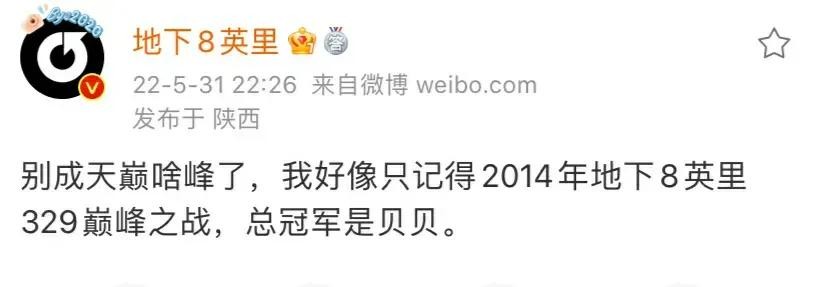“别成天巅啥峰了,我只记得2014年地下八英里巅峰之战总冠军是贝贝”
