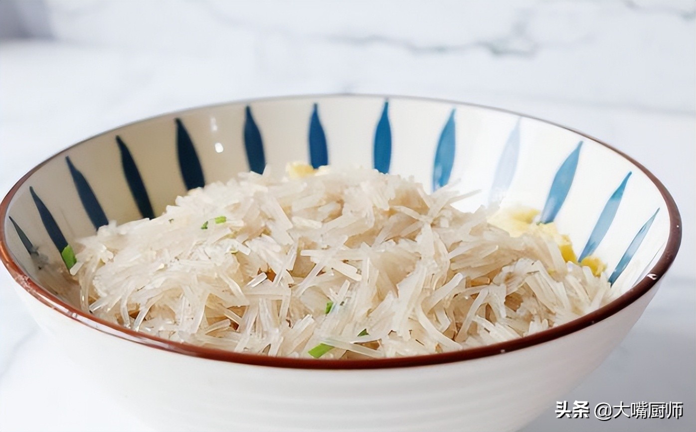 1、龙口粉丝放进开水里煮3分钟,捞出后切碎。也可以提前用温水浸泡,一般半小时才能泡开,直接煮比较省事。