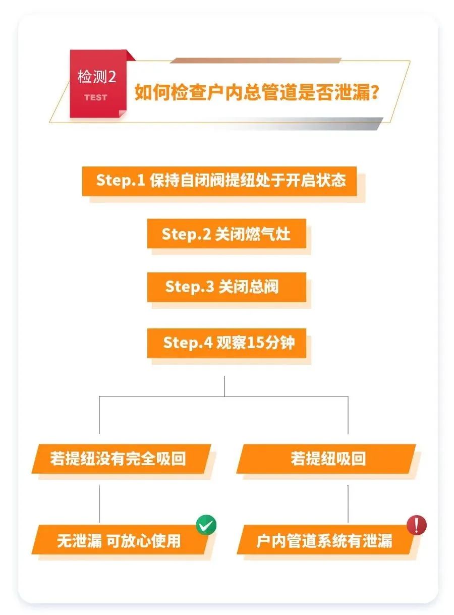 在正常用气状态下关闭表前阀,此时自闭阀自动关闭,火焰熄灭;再打开表前阀,点燃灶具,如果灶具不能点燃,表明自闭阀关闭良好,如果灶具还能点燃则说明自闭阀可能有问题。