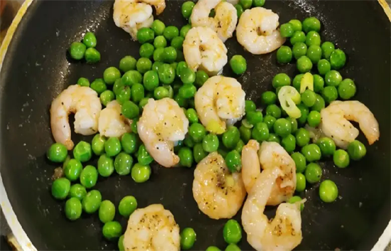 2.这道菜需要快炒。只有高温快炒才能保证虾仁口感鲜嫩,豌豆不失浓郁的清香。