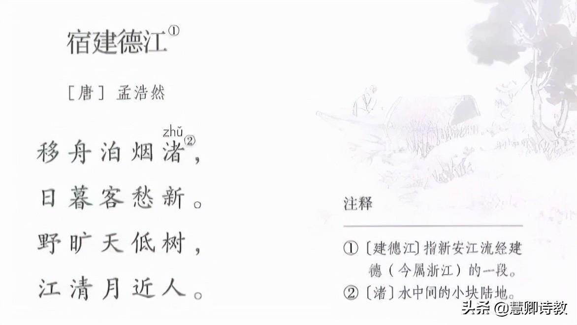 ■《宿建德江》《西江月·夜行黄沙道中》都写了月夜的景色,表达的情感却不一样,结合诗句说一说。