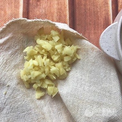 7、晾至70-80度左右倒入放了姜汁的碗里,大概就1分钟。