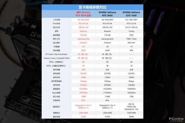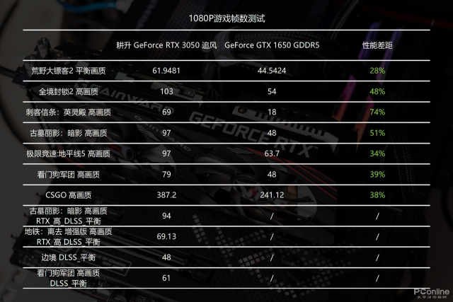 这次我们加入了上代入门卡GTX1650进行性能对比,让小伙伴们能更清楚地了解两代入门卡之间的性能差距