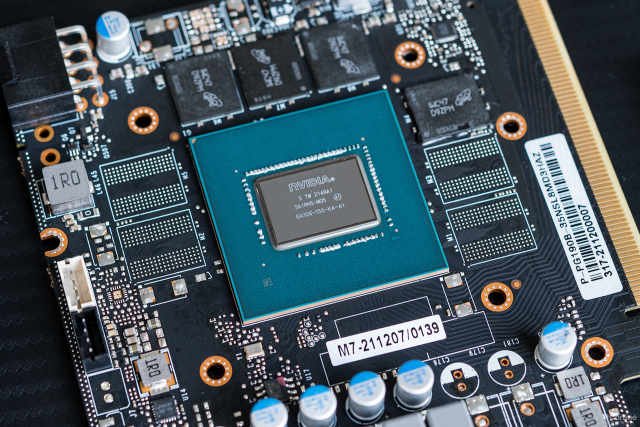 PCB延续了公版PCB的短版设计,从PCB剩余的焊盘可以看出,这套PCB可能是GA106三兄弟(RTX3060Ti/RTX3060/RTX3050)共用的,这样的好处是既可以减少成本,又能够提升生产效率。