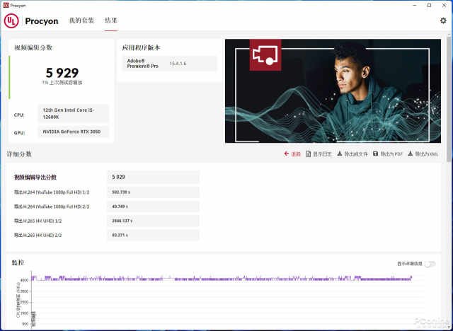 显卡创作性能的衡量,我们使用ULProcyon测试软件和PugetBench测试,对常用视频、图片创作软件的小伙伴具有一定的参考性。