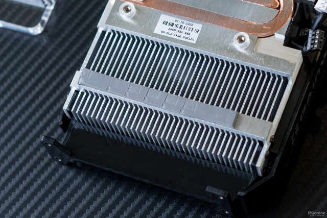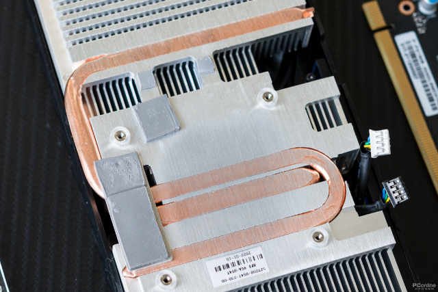 散热器方面,显卡采用两条U型热管直触核心,热管将核心热量转移至大面积散热鳍片中,利用风扇吹入的空气进行散热。风扇支持智能停启,在低负载下风扇会停止运行,减少噪音。