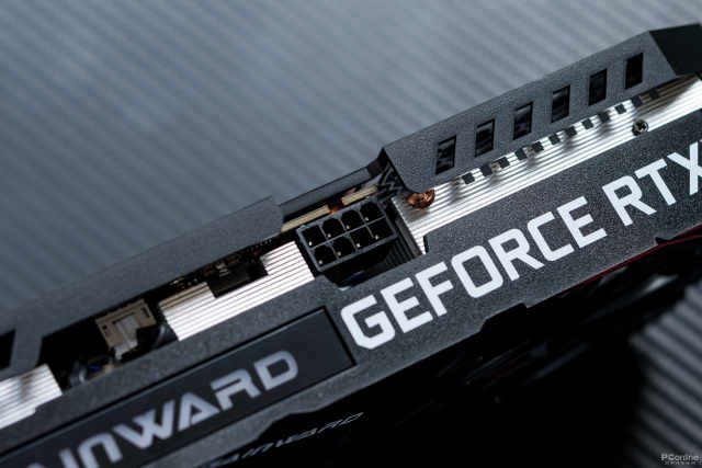 显卡侧面配备了一个带有白光灯效的耕升logo,以及GeForceRTX字样。