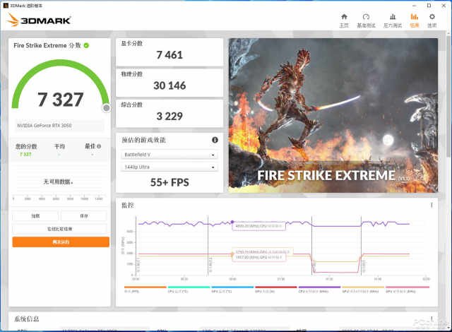 首先是3DMark显卡理论性能测试,分为FireStrike、FireStrikeExtreme、FireStrikeUltra、TimeSpy、TimeSpyExtreme以及PortRoyal六个项目,能较好地反应显卡的理论性能表现。