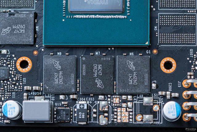 显存来自美光,FBGA编号为:为IWC47-D9ZPM,单颗容量2GB,32bit的显存位宽,四颗显存组成8GB容量和128bit的显存位宽。