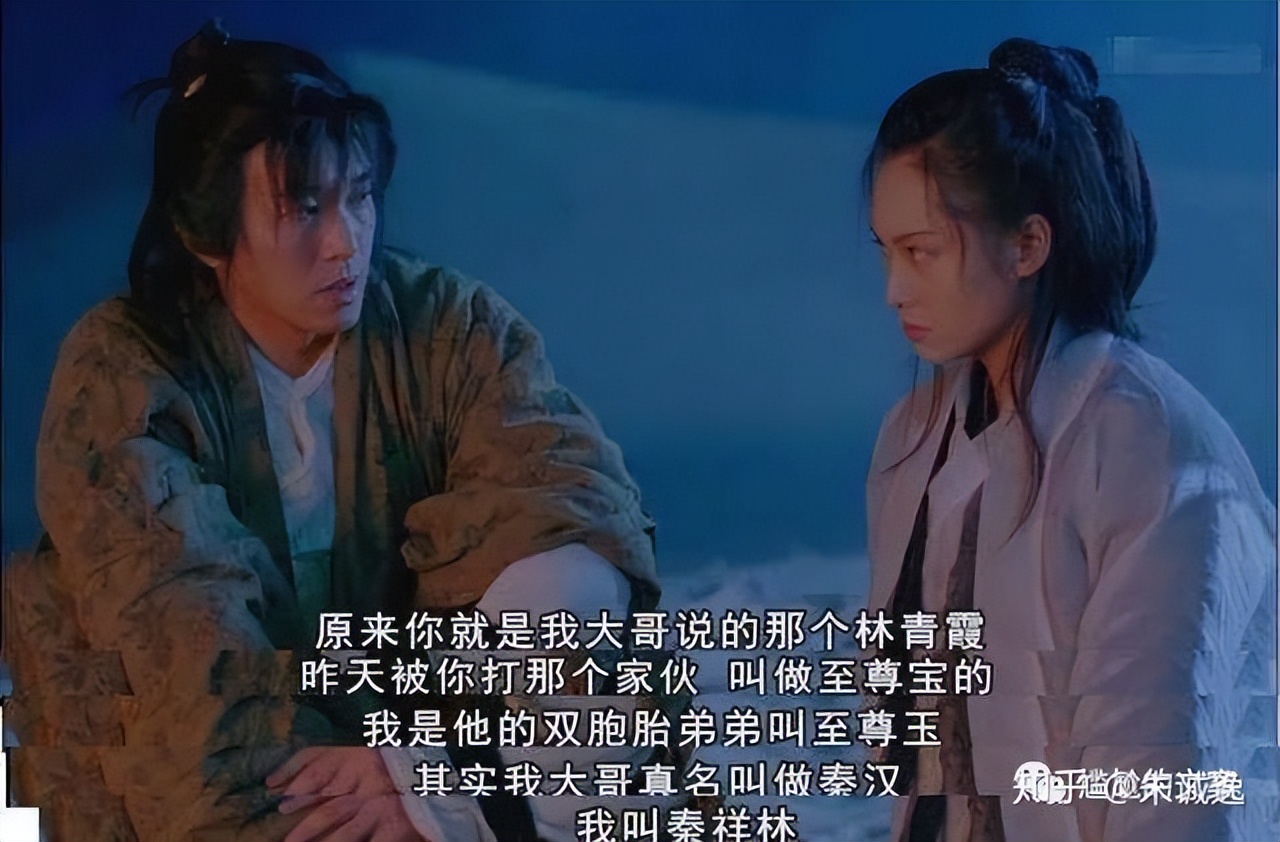 《大话西游》中有一场对白,至尊宝对紫霞仙子说“原来你就是我大哥说的那个林青霞”,紫霞瞪着眼睛没有说话,而至尊宝又说“其实我大哥真名叫秦汉,我叫秦祥林”。