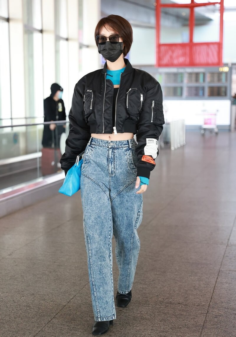 黑色和湖蓝色组合并不一定穿在身上。作为配饰也是可以的。比如穿黑色的小皮衣,搭配牛仔裤。皮衣里穿件湖蓝色的打底衫,领口和袖口露出来一些。再背个湖蓝色的包包,清爽又帅气。还蛮有层次感的。