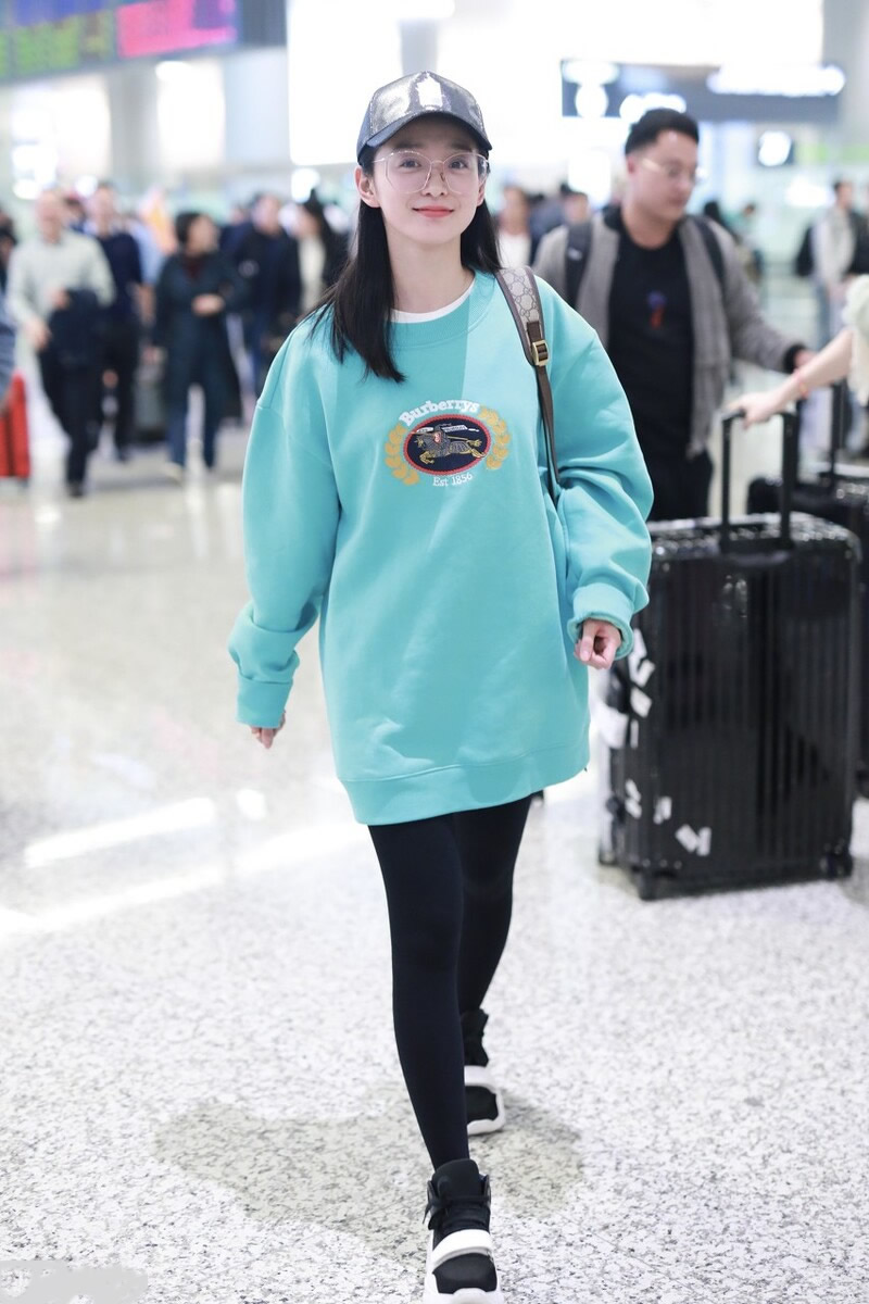 湖蓝色的卫衣是件很好看的单品,搭配一条黑色的紧身裤和黑色的鞋子。简单舒适又自在,很好看的搭配,很适合春天穿去逛街郊游什么的。