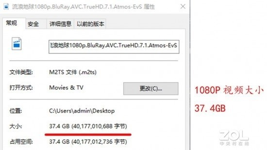 你没有看错,同样一部电影,笔者在网络上下载的1080P版本属性显示37.4GB大小,这几乎相当于视频平台的4K版本十倍大小,在这样如此悬殊的差距下,谁的画面更清晰不言而喻。