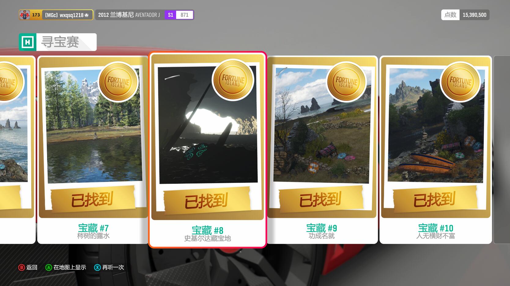 宝藏在湖中的小岛上,需要从湖边有一个白色废弃车辆旁边的高坡飞过去,控制好距离,我自己飞过了好几次……最后送一辆兰博基尼跑车,操控感极佳。