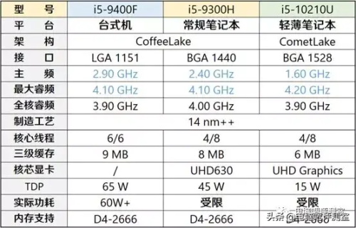 回到前面的表格,我们发现,台式机和移动平台处理器除了核心线程存在差异外,主频区别也很明显,台式机最高,其次是笔记本标压H系列,最低的是U系列产品,这个标定值与TDP完全挂钩!千万别看三者的最高睿频、全核睿频没啥区别,实际运行时差异还是蛮大的,尤其是“干苦力”的时候。