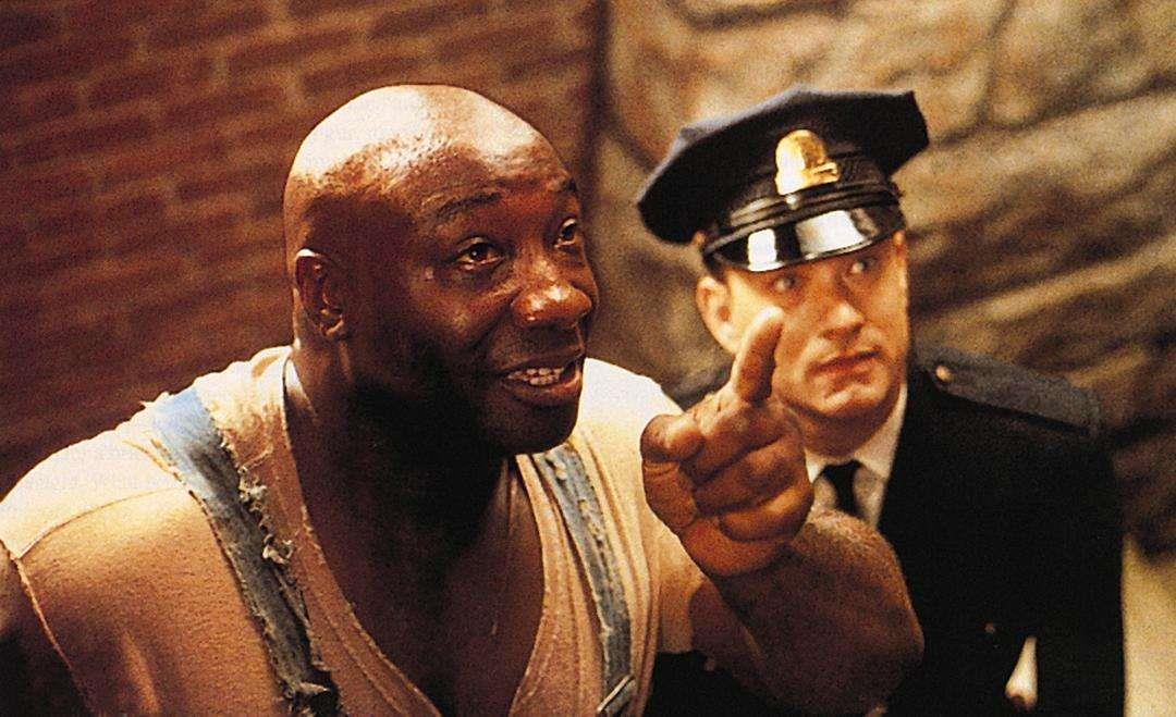 电影一开头神秘的约翰·科菲(囚犯主角)是被一辆汽车拉过来的,为了存托出囚犯的体格高大,汽车被压的很低,在电影里面也是很细节了,但是当两位主角相互见面的时候,让人见到他相貌恐怖,体形硕大,却出奇地平和、敏感而缄默,天真时甚至像个孩子,同时,他似乎还具有一种不可名状的神秘力量,令人不由自主地对其产生信任感,这不禁让艾治科姆对其罪行是否属实深怀疑问。