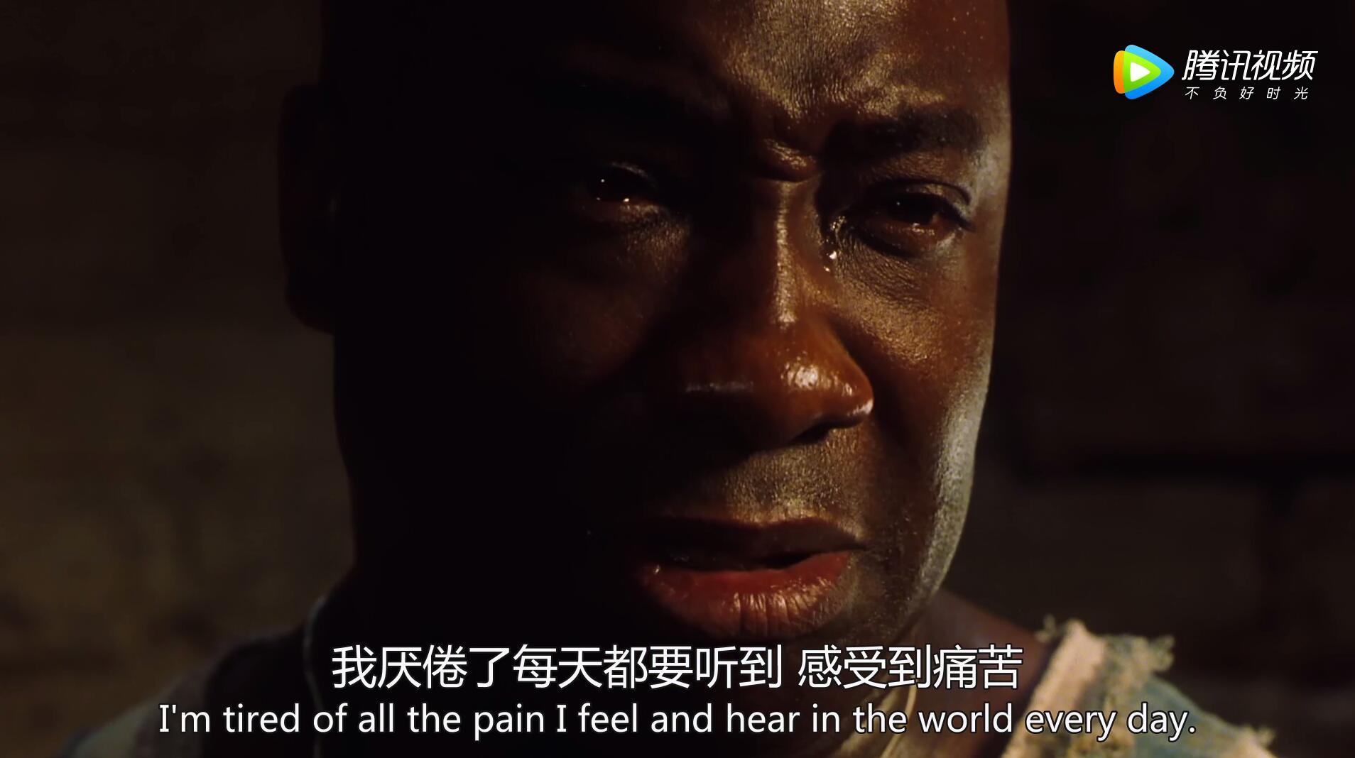让我最感动的是,约翰.卡非临刑前要求看一部电影,因为他从来没有看过电影。在即将坐上电椅的时候,约翰.卡非对狱警们说自己做了一个梦,老鼠村真的存在,那两名小女孩没有死,而是坐在自己的腿上看金格先生表演。看到此处,潸然泪下,人间太多痛苦了,他要感受世间无处不在的痛苦,真的是太累了,天使没有错,错的是人类。